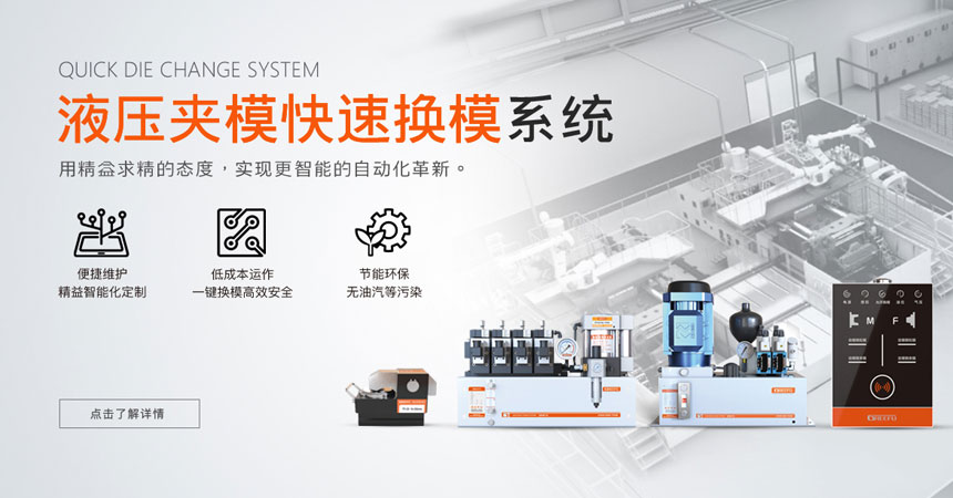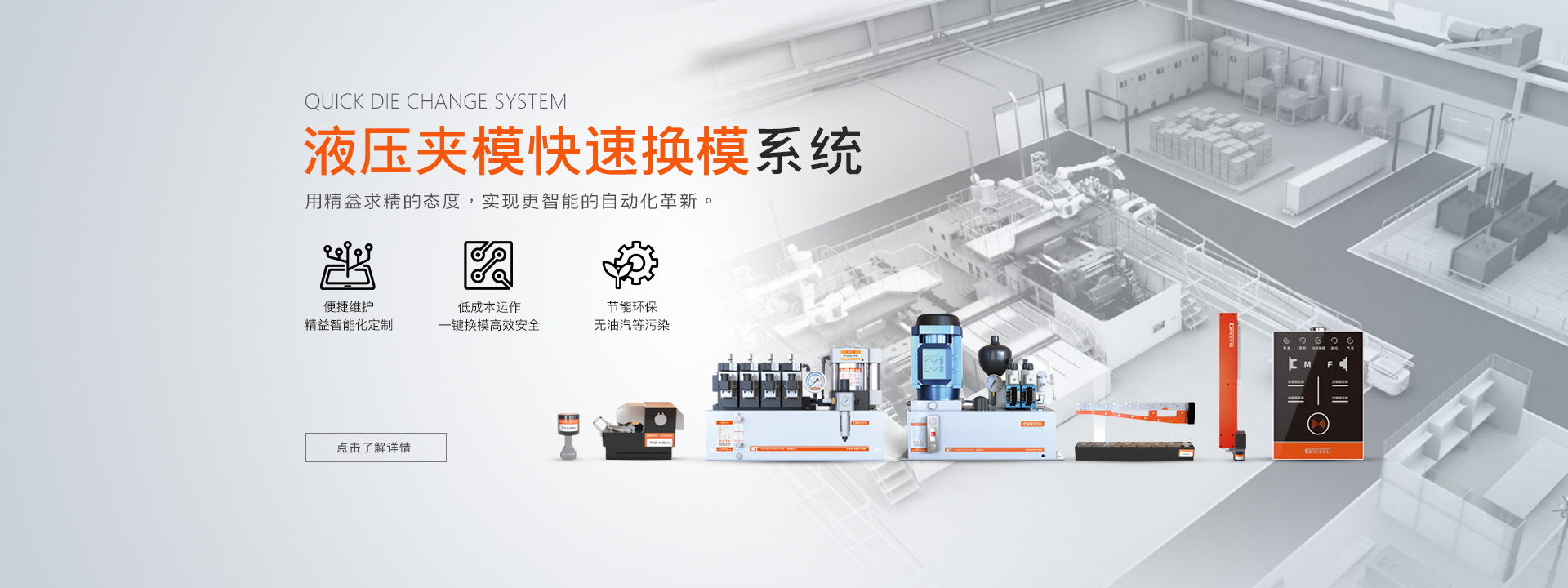液壓快速換模系統(tǒng) 格萊富注塑機快速換模系統(tǒng)采用 TY 夾模器,以油壓驅(qū)動取代舊式固定夾的方式,不需要在模產(chǎn)過程中,短時間內(nèi)輕易完成換模作業(yè),更省時省力。目前已在家電,汽車、機械等行業(yè)豐富應(yīng)用